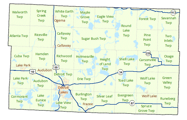 Becker County is located in northwestern Minnesota and was established on March 18, 1858 by the Territorial Legislature. The county was named after George L. Becker, a St. Paul Alderman (1854-1856), Mayor of St. Paul (1856), and State Senator (SD 01, 1868-1872). Becker was also a candidate in 1857 for one of an expected three at-large U.S. House seats and placed third, but when Minnesota received only two seats in 1858, the top three finishers drew lots and Becker came up short. Detroit Lakes is the county seat. Source: Becker County website.