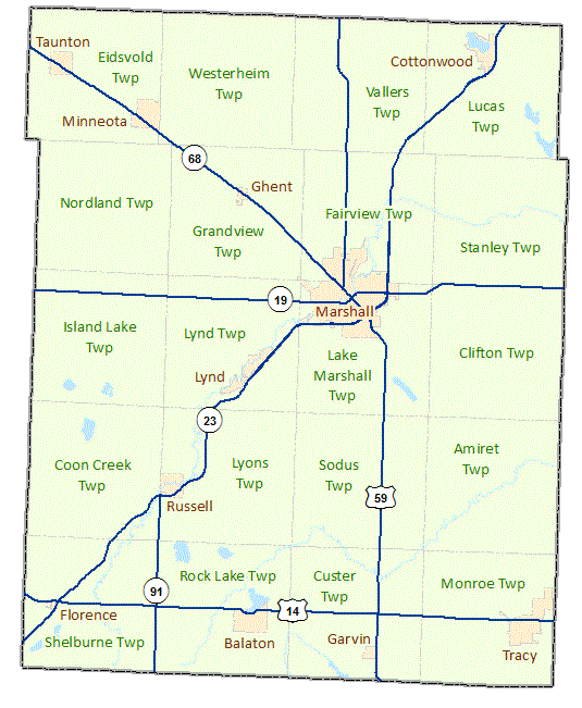 Lyon County is located in Southwestern Minnesota and was established by two acts of the State Legislature on March 6, 1868 and March 2, 1869. Lyon County is named after Brigadier General Nathaniel Lyon who was the first Union Army general killed in the U.S. Civil War. Marshall is the county seat. Source: Minnesota Geographic Names, by Warren Upham (Minnesota Historical Society, 1969).