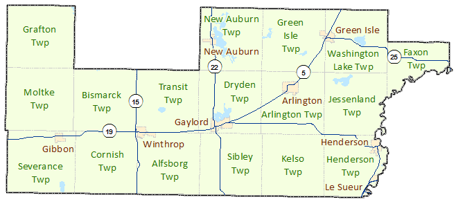 Sibley County is located in South Central Minnesota and was established on March 5, 1853 by the Territorial Legislature. Sibley County is named for Democratic Wisconsin U.S. Delegate (1848-1849), Minnesota U.S. Delegate (1849-1853), and Minnesota Governor (1858-1860) Henry Sibley. Gaylord is the county seat. Source: Minnesota Geographic Names, by Warren Upham (Minnesota Historical Society, 1969).