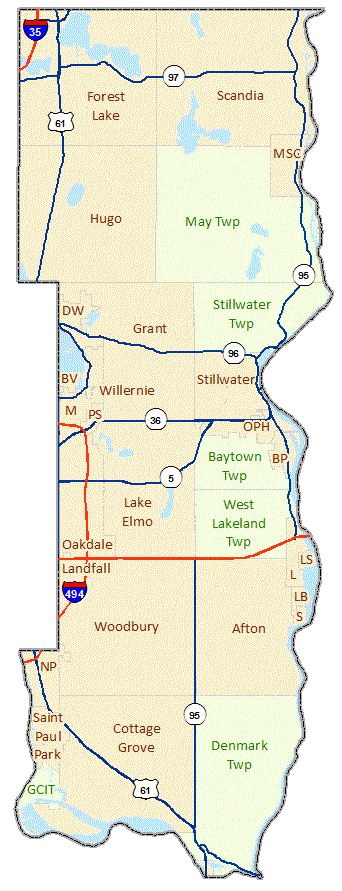 Washington County is located in East Central Minnesota along the Wisconsin border and was established on October 27, 1849 by the Territorial Legislature as one of the original nine counties. Washington County is named for U.S. President (1789-1797) George Washington. Stillwater is the county seat. Sources: Washington County website. Minnesota Geographic Names, by Warren Upham (Minnesota Historical Society, 1969).
