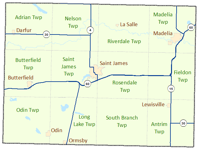 Watonwan County is located in South Central Minnesota and was established on February 25, 1860. Watonwan County is taken from the Dakota word meaning "where fish bait abounds." Saint James is the county seat. Source: Minnesota Geographic Names, by Warren Upham (Minnesota Historical Society, 1969).